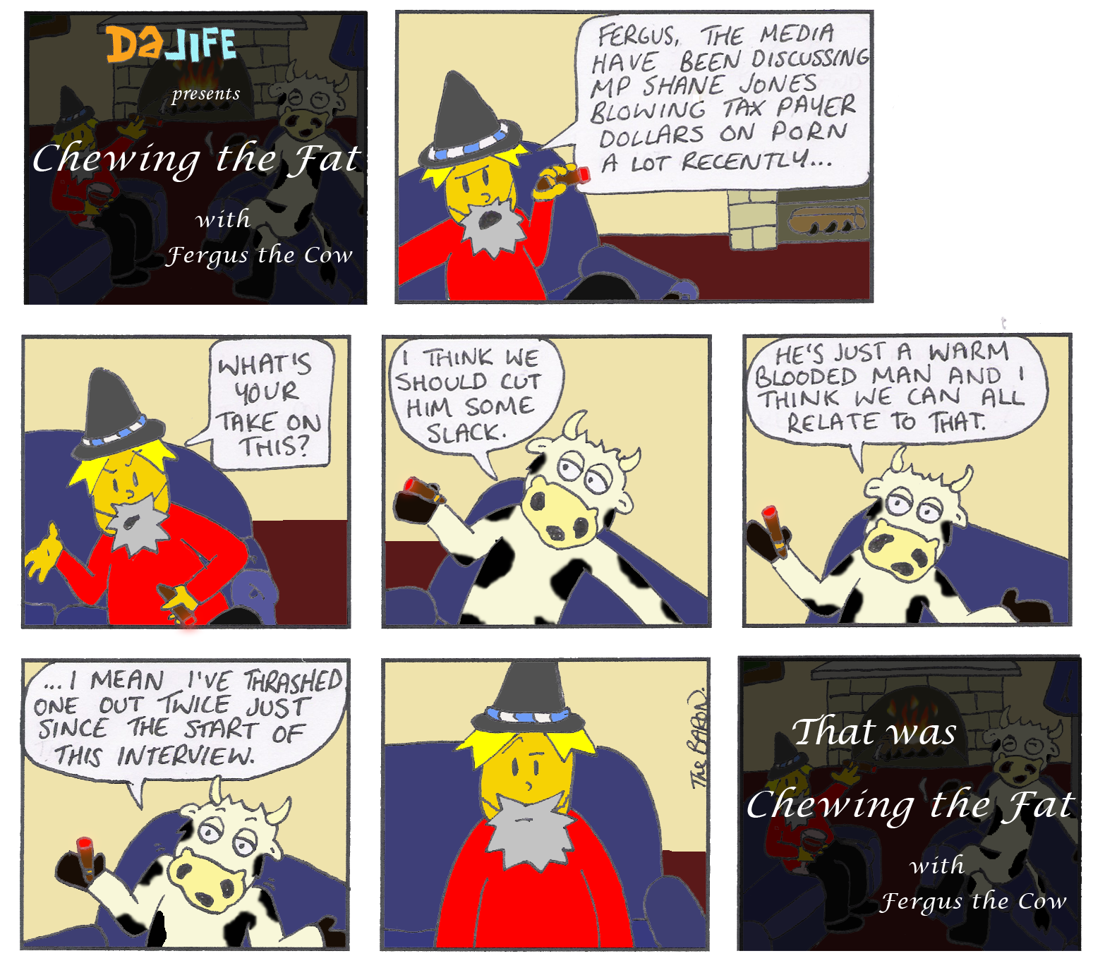 It's exactly ten years since I first drew a cartoon strip which suggested a friend of mine did improper things with family members in an online porn film. Like a ragged finger-nail in your bum hair Da Life has endured and I thought I would mark this anniversary with a crappy picture from Blinding Date. Up yours!